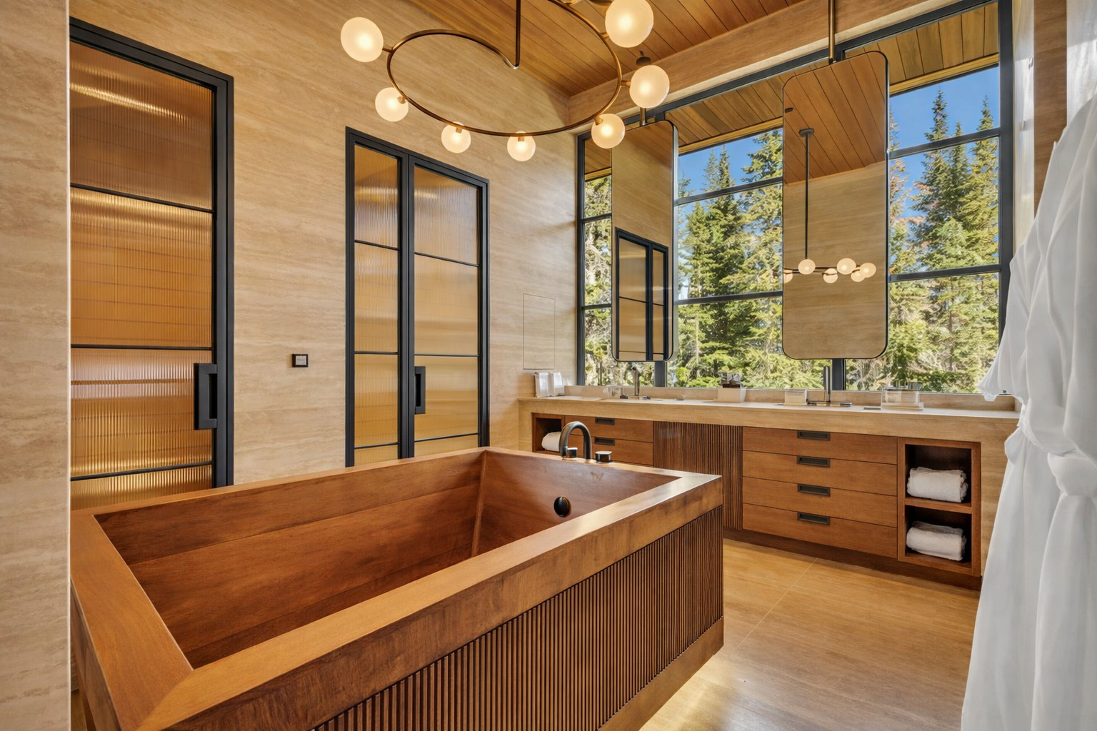 This project required a tub of exceptional scale. To balance the client’s vision with practical use, we built it as a cased tub with a 4-inch-wide top edge. Both the tub and its casing are crafted from quarter-sawn white oak, with incised reeding on the exterior faces of the casing. Set on a white oak floor and integrated with existing white oak cabinetry and shelving, the tub establishes a strong sense of material continuity within the space. Installed in a private ski residence in Utah.