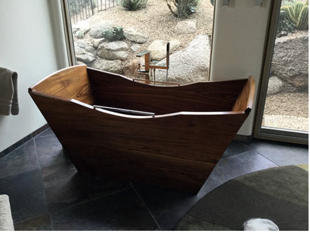 The heartwood is a light brown color. Has a medium to coarse texture similar to oak. The grain is almost always straight and regular. Perfect for Ofuro owners who want an unembellished, clean line to the tub.